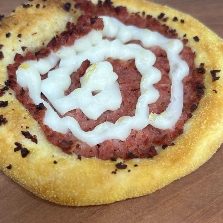 Massa exclusiva da casa, calabresa processada coberta com um delicioso requeijão cremoso. Experimente!