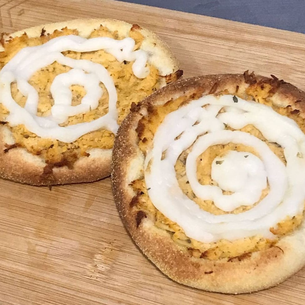 Receita de massa exclusiva da casa, frango desfiado e devidamente temperado, com aquela cobertura de requeijão cremoso. Agrada paladares brasileiros e árabes!