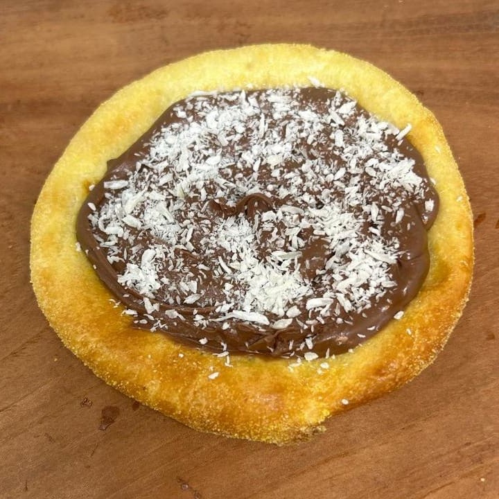 Massa especial, recheada com chocoate e coco ralado.