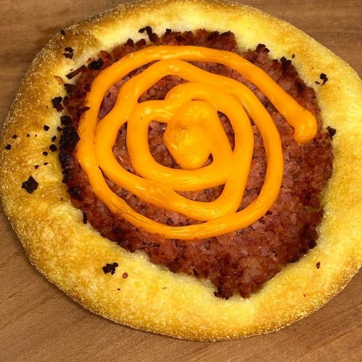 Receita de massa exclusiva da casa, calabresa frimesa processada, coberto com um delicioso cheddar!