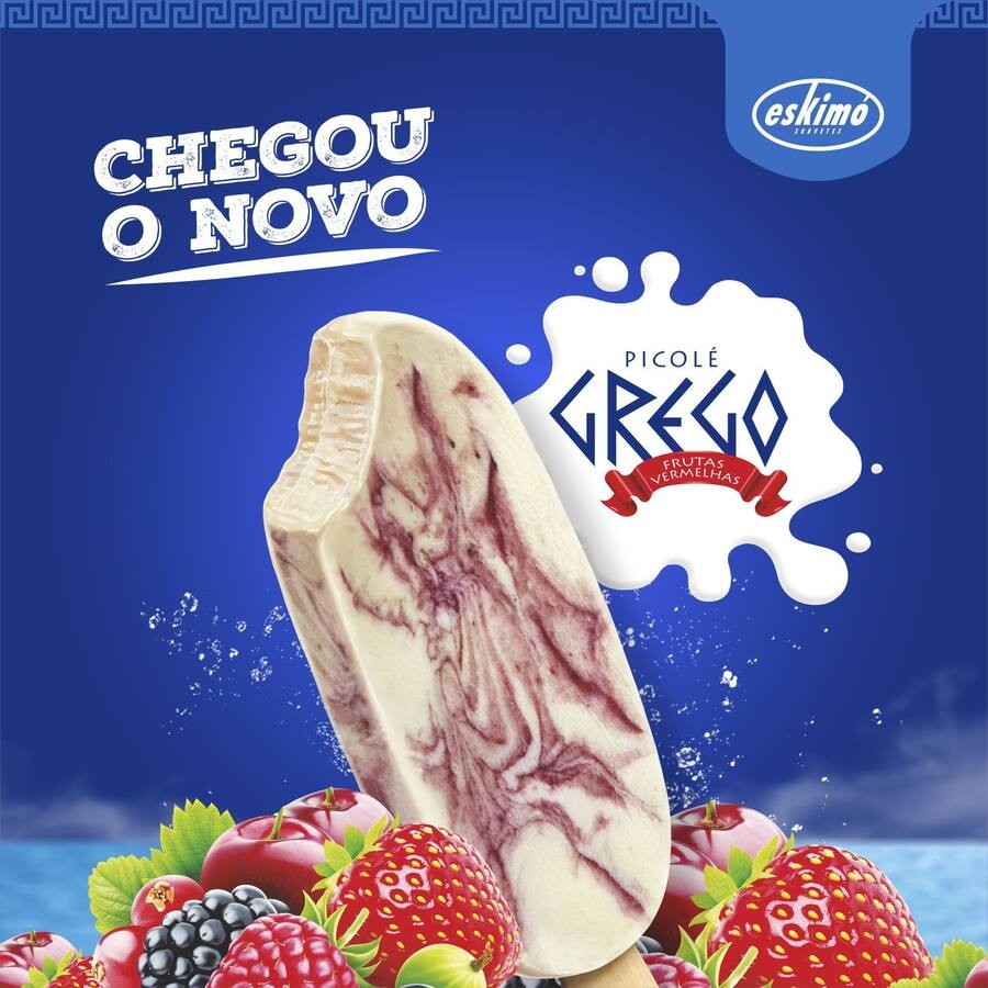 Sabor iogurte grego mesclado com frutas vermelhas.