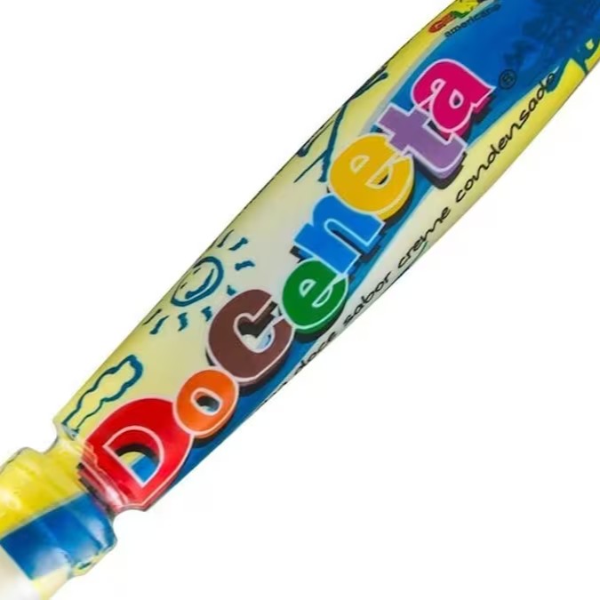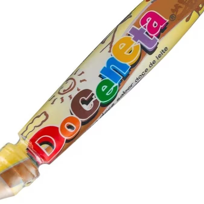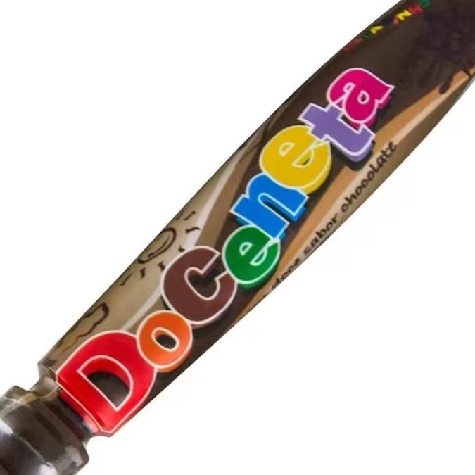 Sabor leite com recheio palito de chocolate, coberto com casquinha de chocolate branco com amendoim.