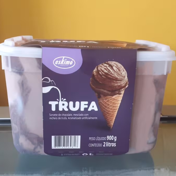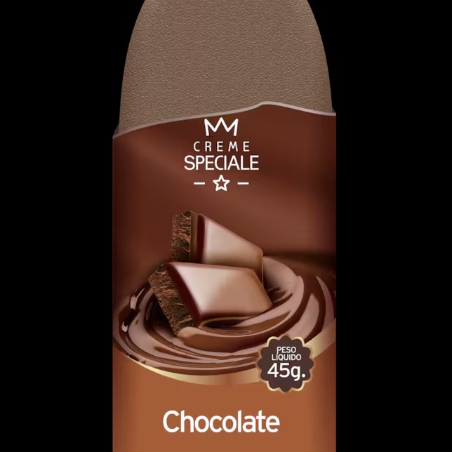 Sabor brigadeiro com casquinha e granulados de chocolate.