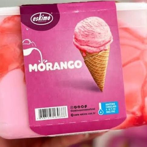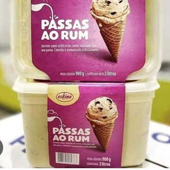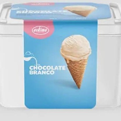 Delicioso sorvete de chocolate branco com pedacinhos de choc branco.