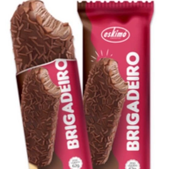 Picolé sabor Chocolate, coberto com chocolate meio amargo e granulado.
