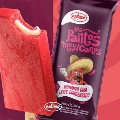 Picolé sabor Leite, com recheio de chocolate meio amargo e cobertura de chocolate branco com amendoim