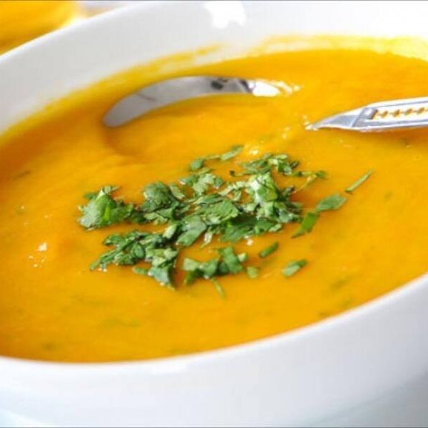 Caldo de frango, frango desfiado, batata, cenoura e arroz