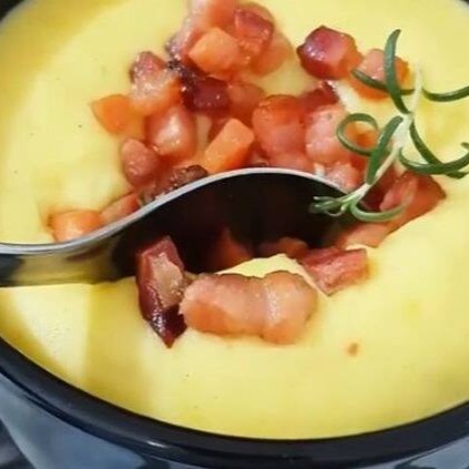 Caldo de feijão, bacon, calabresa, batata, cenoura e macarrão