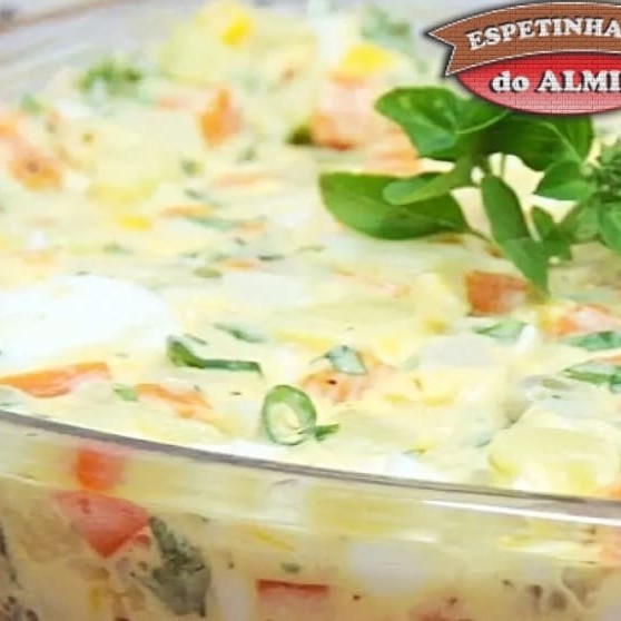 Preparada com batata, cenoura, cebolinha, salsinha, cebola, ovo, azeite de oliva e maionese. Receita caseira, feita sempre do mesmo jeito. Por padrão da casa, não alteramos os ingredientes.