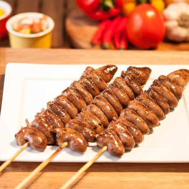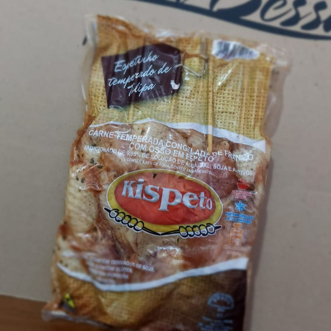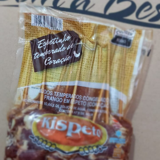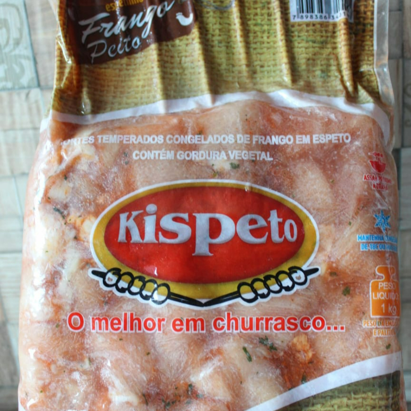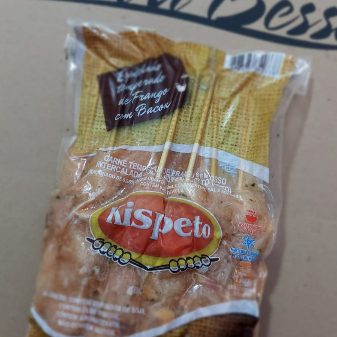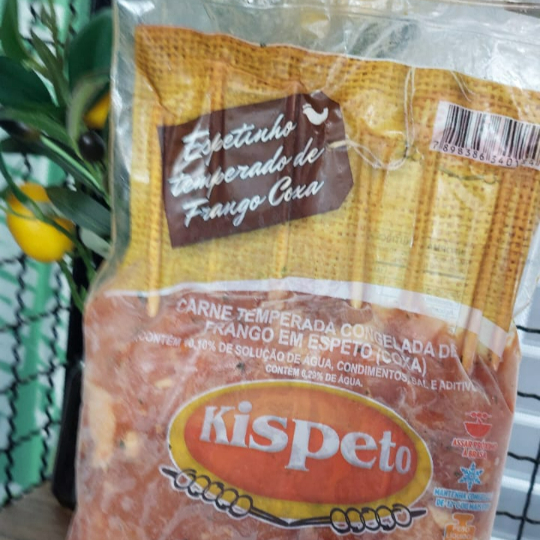 Cru, pronto para assar. Pacote de 1kg = 10 espetos 100g. Prontos para assar.