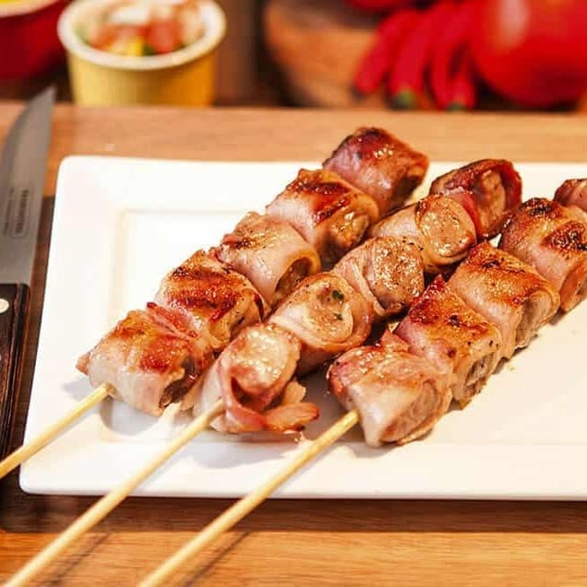 Contém 1 unidade. Composição: pedaços de lombo envoltos numa fatia de bacon.