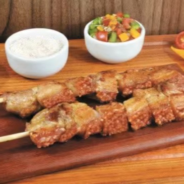 Corte nobre e suculento de Alcatra intercalado com fatias de bacon e legumes , grelhado no ponto certo para manter toda a meciez e sabor da carne. Feito na brasa, com tempero especial da casa, ideal para quem aprecia um espetinho de qualidade (100g in natura)