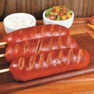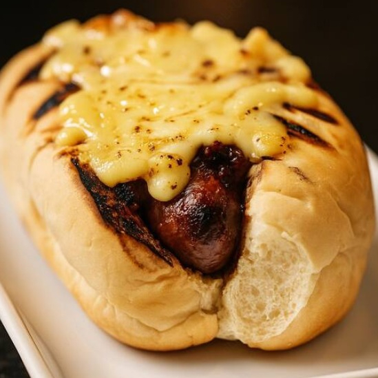 Salsichão suculento recheado com queijo provolone, levemente defumado e derretido na brasa, uma dupla irresistível, perfeita para quem gosta de sabores intensos e aquele toque especial do churrasco!