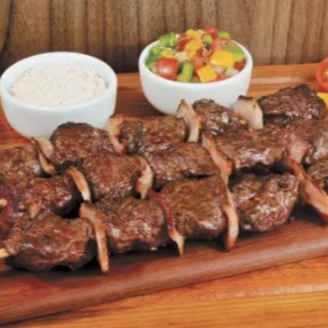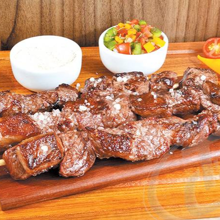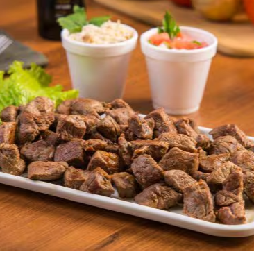 deliciosos cubos de alcatra com o tempero especial da casa, assados em brasa ao ponto ideal prezando pela suculencia e maciez da carne
