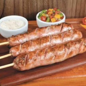 Linguiça Cuiabana tradicional, recheada com queijos e levemente apimentada, assada na brasa ate ficar dourada e suculenta. Uma explosão de sabores, perfeita para quem curte um espetinho diferente e cheio de personalidade!
