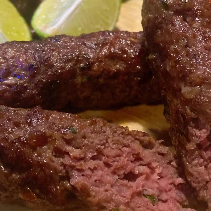 Pão de alho, 1 espetinho de carne, maionese da casa e vinagrete.