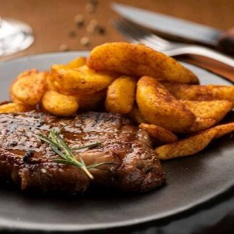 Contra Filé Sem Osso Individual (bife Ancho) Com Batatas Rusticas Fritas.