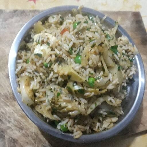 Arroz preparado com ovos cebolas e especiarias