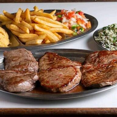 Contra Filé, 2 Pessoas (ancho Sem Osso ) Grelhado Batata Rustica Fritas Arroz Farofa E Vinagrete.
