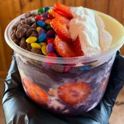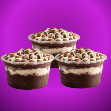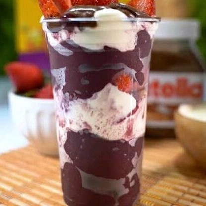 Açaí com Morango, Leite em pó, Chocoball e Leite Condensado