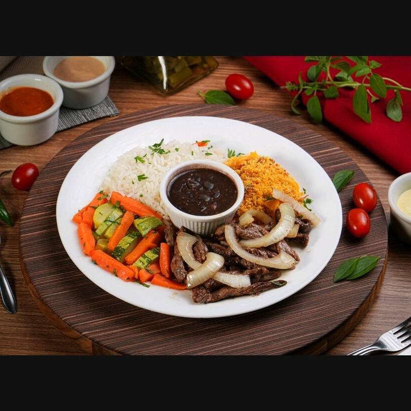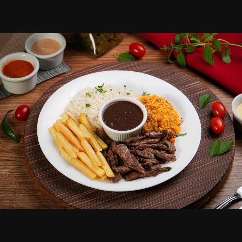 Saboreie nossas apetitosas tiras de bife, meticulosamente grelhadas na chapa até atingir o ponto perfeito de suculência. Este prato é servido com