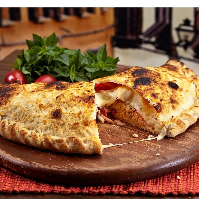 Mussarela, escarola, pimentão, palmito, cebola, Catupiry, bacon, calabresa, presunto, tomate e ricoota