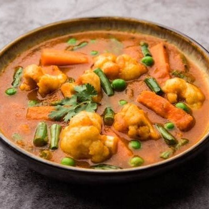 Mistura de vegetais cozido em molho cremoso de tomate,tamarindo e especiarias aromaticas.