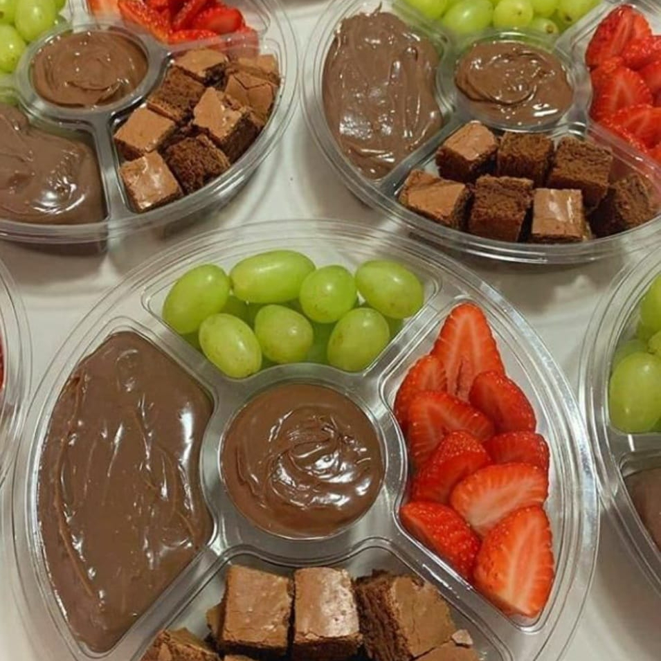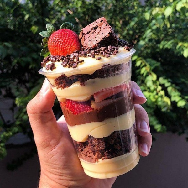 🍓 Uma explosão de sabores em cada divisão! Morangos fresquinhos e uvas doces combinados para trazer leveza e suculência, acompanhados de pedaços generosos de brownie macio e intenso. Para completar, um delicioso brigadeiro cremoso em molho, perfeito para mergulhar cada pedacinho e transformar cada colherada em uma experiência irresistível, rica e cheia de sabor. 🍫✨