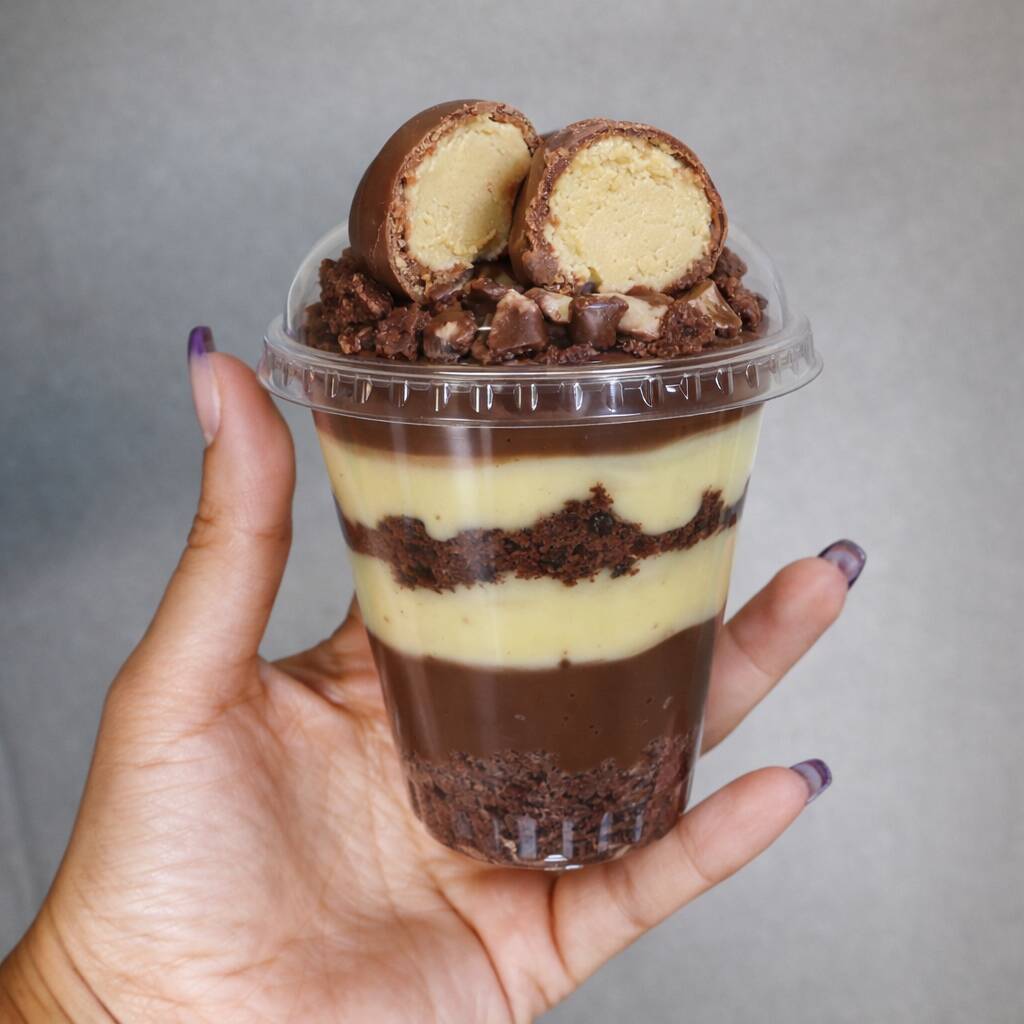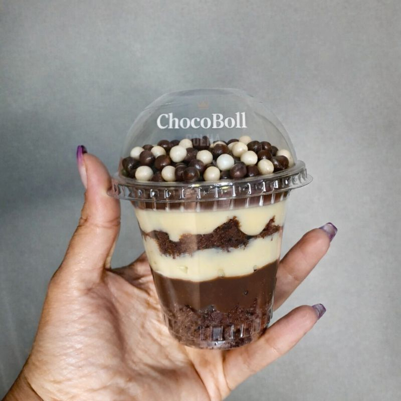 Camadas irresistíveis de creme branco super aveludado, chocolate cremoso e pedaços macios de brownie, finalizado com as famosas bolinhas crocantes ChocoBoll que dão um toque especial a cada colherada. ✨ Um copo perfeito para quem ama doce com crocância e muito recheio!