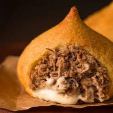 Coxinha artesanal recheada com costela bovina desfiada bem temperada e cremosa, combinada com queijo Requeijão cremoso que derrete na boca. Envolvida em uma massa macia e dourada, frita até ficar crocante por fora e extremamente suculenta por dentro. Um salgado irresistível para quem ama sabor! 😋