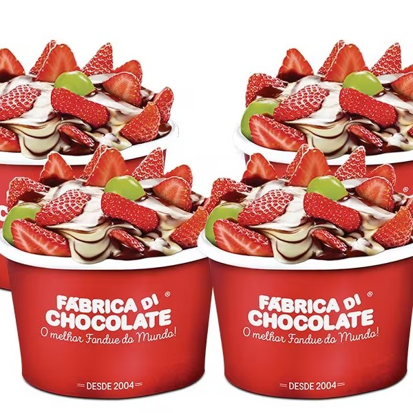 4 potes de frutas com chocolate.