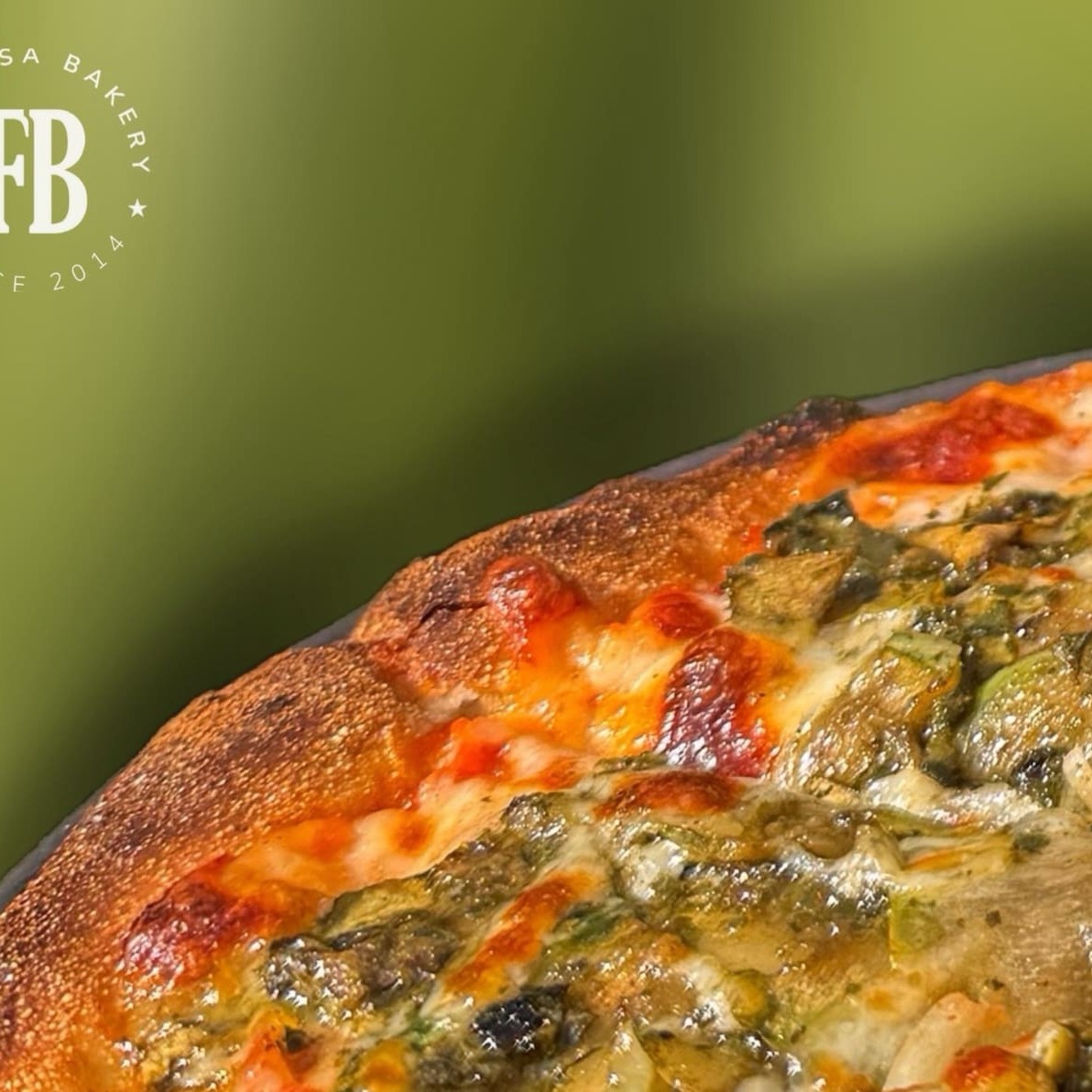 Massa crocante de fermentação longa e natural, molho de tomate artesanal, muçarela, abobrinha e pesto de manjericão.