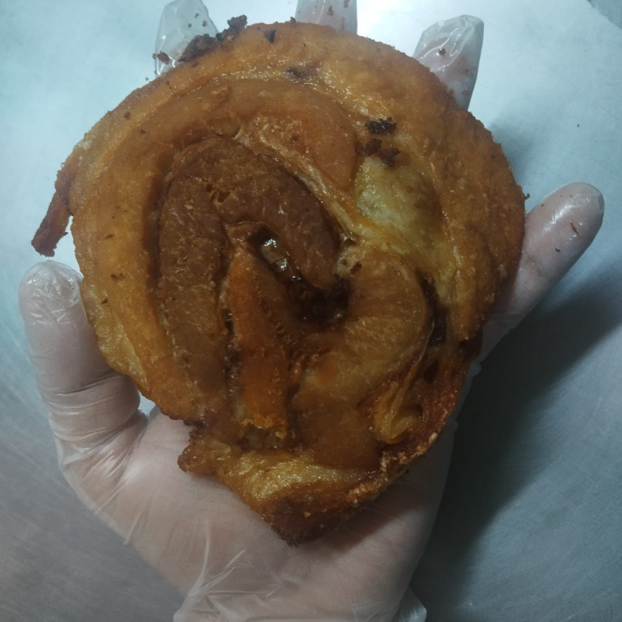 Fatia de Pancetta marinada em temperos naturais, lentamente assada, fatiada e frita para dourar.