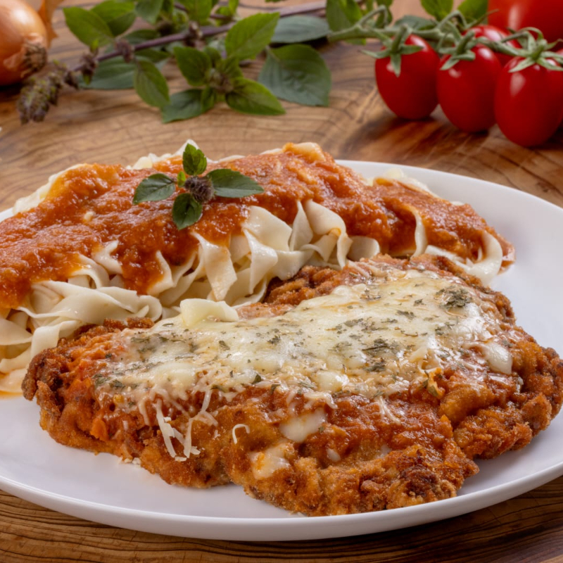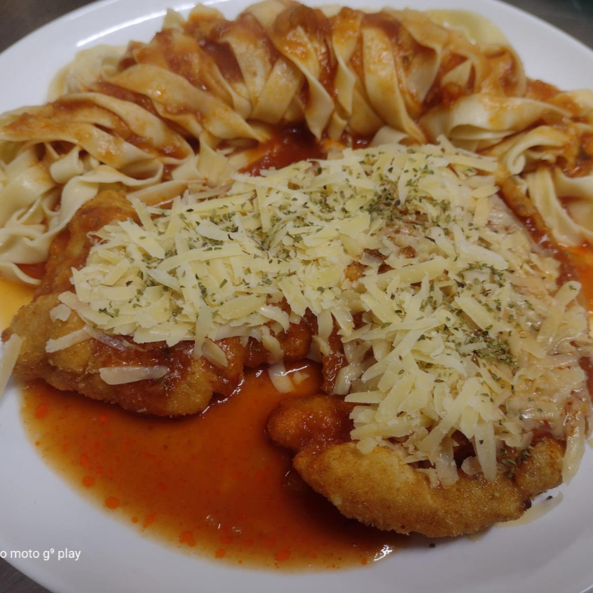 Peito De Frango A Parmegiana Com Massa De Sua Preferência