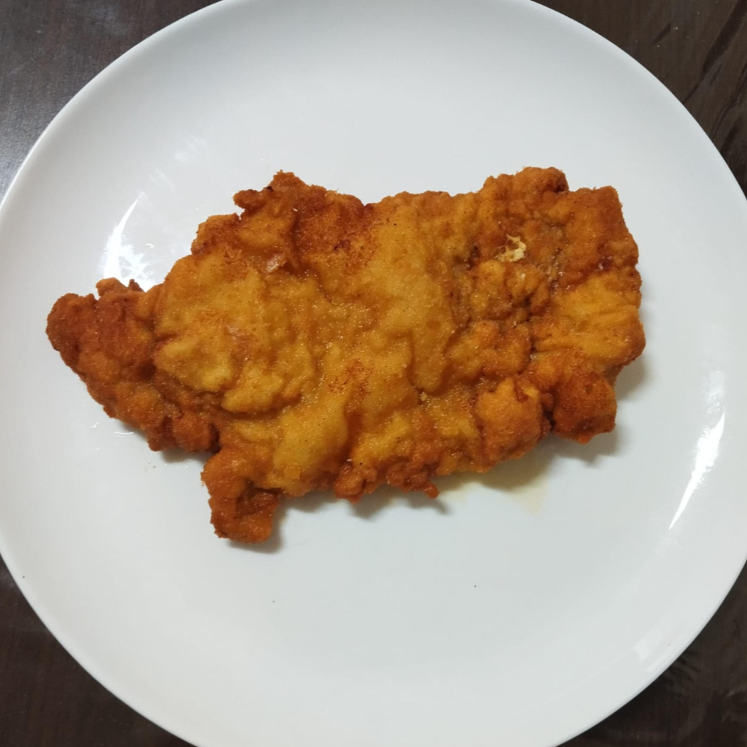 Fina fatia de carne de porco sem osso, batida, empanada e frita.