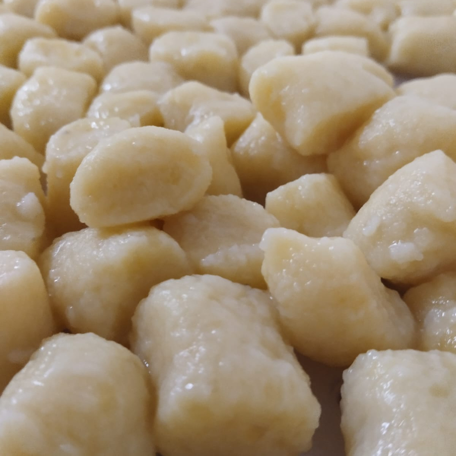 A tradição do nhoque da fortuna tem origem em uma lenda italiana. Conta-se que, em um Dia 29, o santo cristão São Pantaleão, disfarçado de andarilho, pediu comida a uma família pobre. Mesmo com poucos recursos, a família compartilhou seu jantar de nhoque com ele, e ao sair, São Pantaleão deixou moedas de ouro embaixo dos pratos como agradecimento. Acredita-se que comer nhoque no Dia 29 atrai sorte e prosperidade, especialmente financeira. A tradição envolve colocar uma nota ou moeda debaixo do prato, comer os sete primeiros pedaços em pé, fazendo um pedido a cada um, e guardar a moeda como amuleto até o próximo Dia 29.Nhoque Artesanal, com molho e proteína de sua escolha. Serve uma pessoa.
