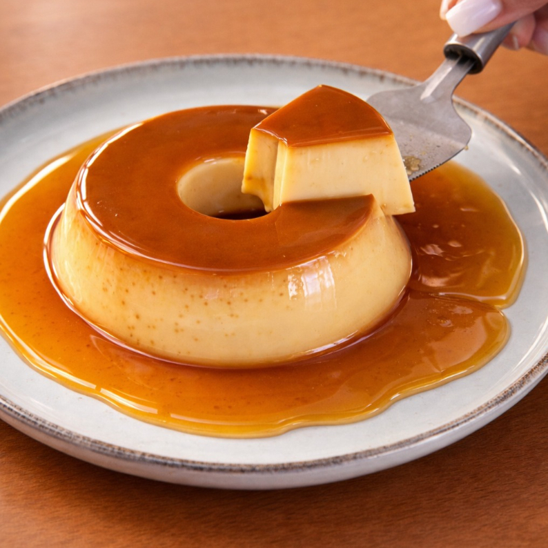 Um clássico pudim cremoso feito com leite condensado, ovos e caramelo.