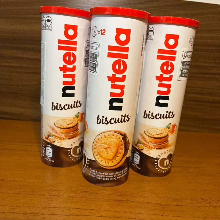 O Biscoito Nutella 304g (Nutella Biscuits) da Ferrero é um biscoito crocante, dourado e amanteigado por fora, recheado com o cremoso e autêntico creme de avelã e cacau Nutella, oferecendo uma combinação de textura e sabor irresistível, com a embalagem sendo resselável para manter a crocância, sendo um produto importado da Alemanha e ideal para qualquer hora do dia.