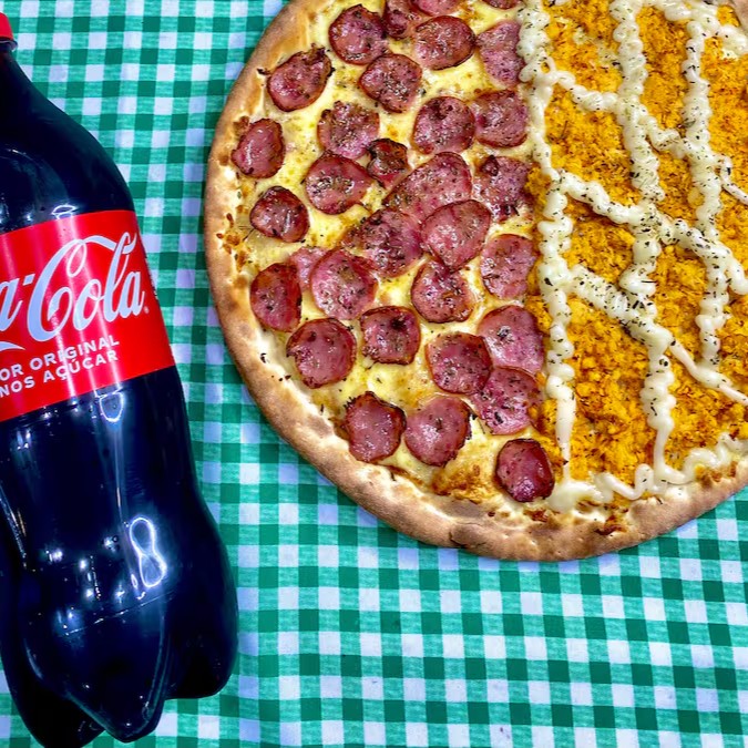 Encante-se com a nossa Pizza Grande, composta por 8 fatias irresistíveis. Você tem a liberdade de escolher entre sabores especiais, tradicionais e doces, podendo selecionar até dois sabores diferentes para incrementar sua pizza. Utilizamos ingredientes frescos e primorosamente selecionados, garantindo um sabor inigualável em cada mordida. Este combo é acompanhado por um suculento refrigerante de 2 litros, perfeito para harmonizar com a sua refeição. Um verdadeiro deleite para os amantes de pizza!