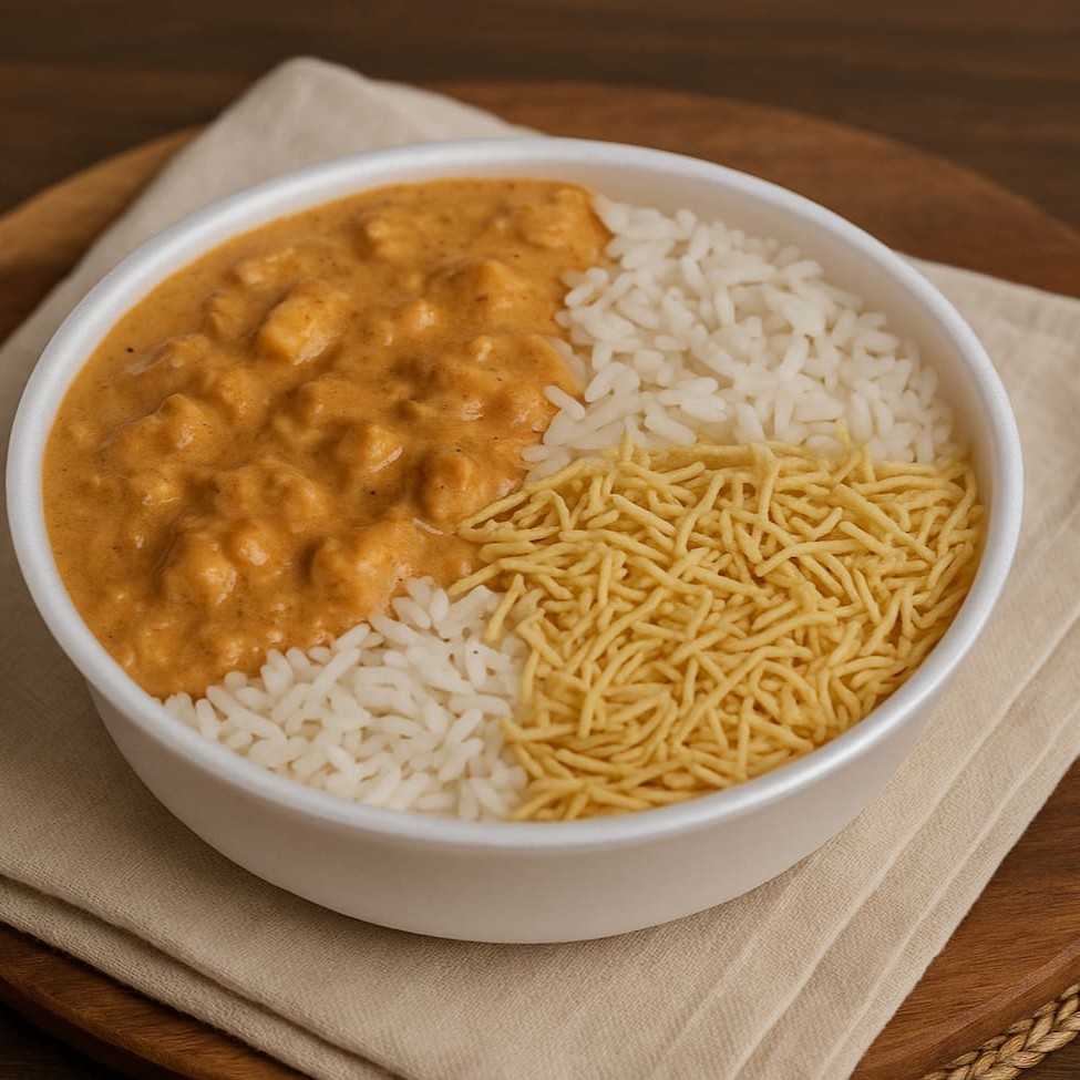 Marmita com Strogonoff de frango + Arroz + Batata Palha Marmita de 550 ml*