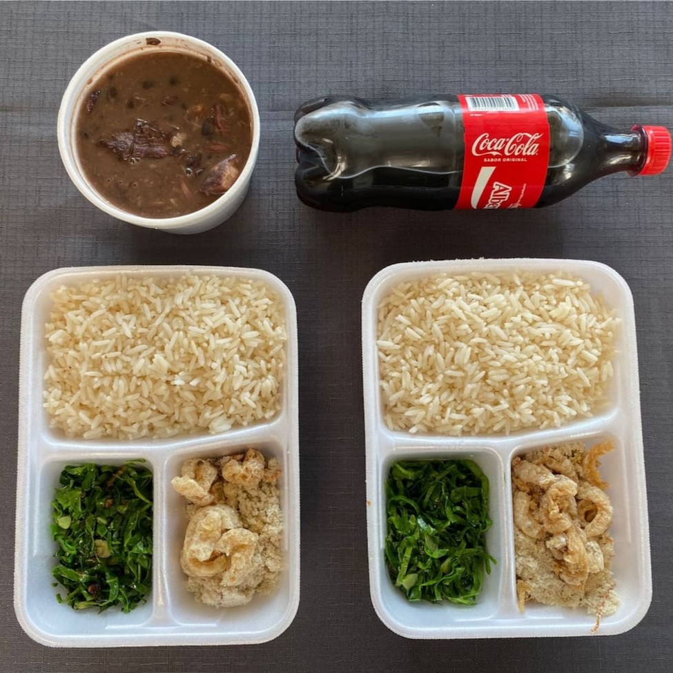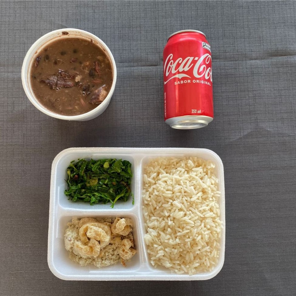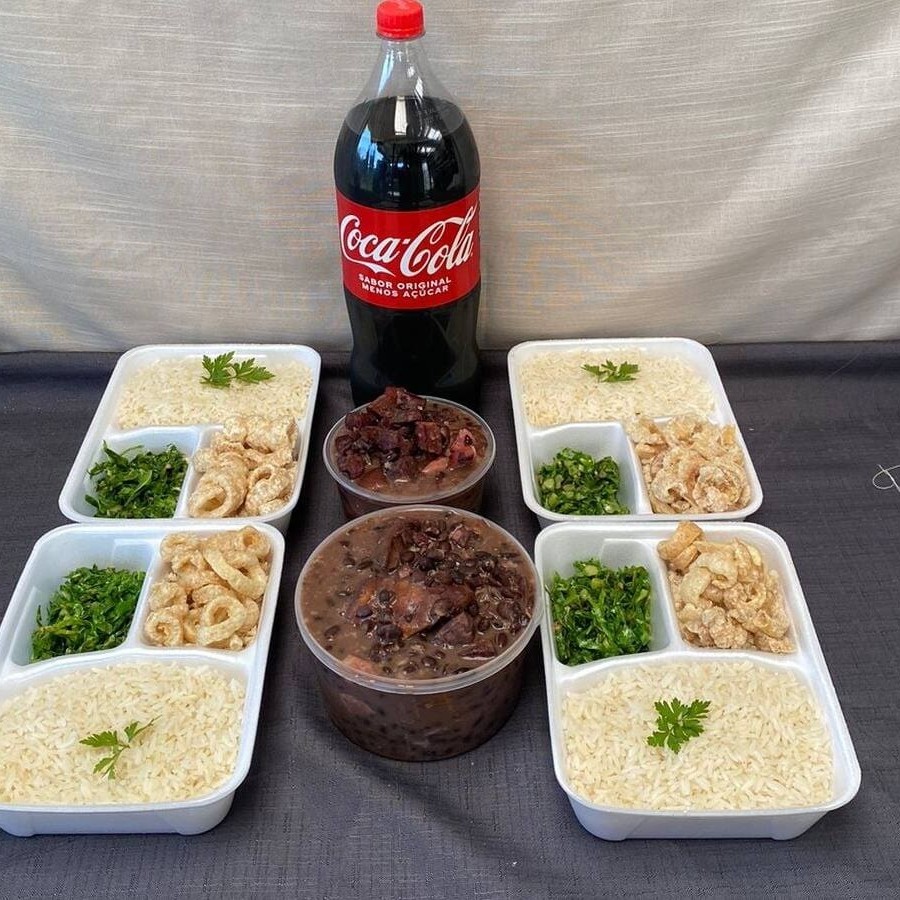 Refeição que pode servir de até 5 pessoas. Acompanha: (2l) Feijoada Magra, Arroz, Couve refogada, Pururuca, Farofa especial + Coca-Cola 2l com opção de acrescentar vinagrete ao pedido. - Entregue com 4 marmitas com divisórias super completas! Kit enviado com feijoada em embalagem separada e 4 marmitas com divisórias para os acompanhamentos, preservando a integridade e o sabor de cada item.