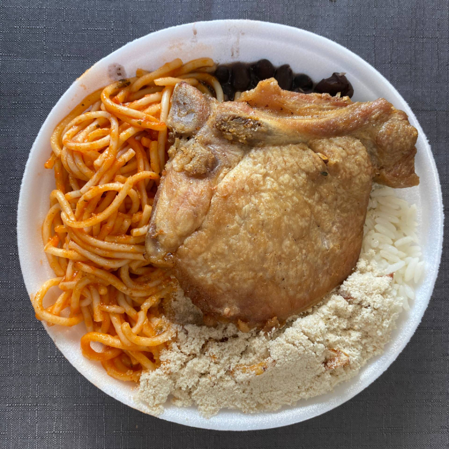 Marmita com Frango Grelhado + Arroz + Feijão + Macarrão + Farofa Marmita de 550 ml*