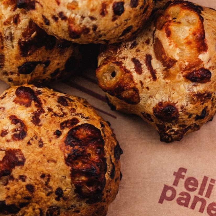 Combinho de três (3) pães de queijo de cebola caramelizada.