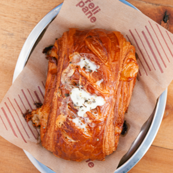 Nossa massa de croissant folhado fininha com muita manteiga, recheado com queijo, presunto e oregano.