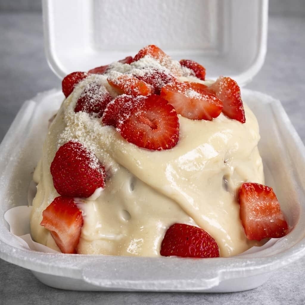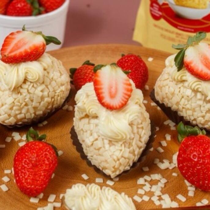 Bolinho Vulcão de Massa Branca Uma explosão de sabor! Massa branca fofinha, com cobertura de brigadeiro de Ninho cremoso e Morangos frescos picados. Delicado por fora, irresistível por dentro!————————————-bolinho vulcão, caseirinho, bolinho, lanche, cupom, frete grátis, desconto, promoção, bolo vulcão