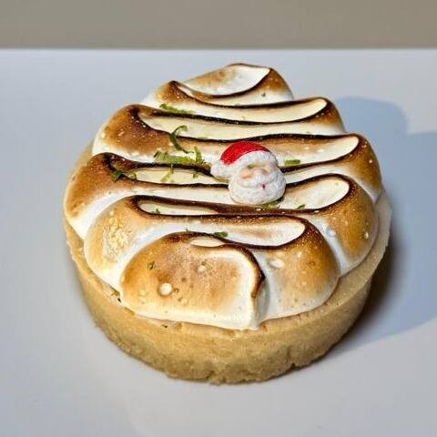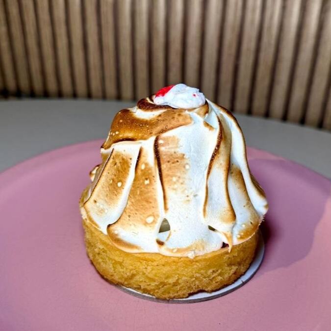 Massa patet sucrê, mousse cremoso de limão, merengue maçaricado e raspa de limão.