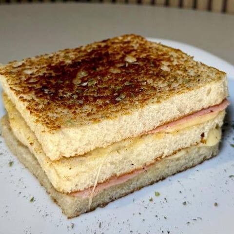Pão de Hambúrguer, hambúrguer artesanal, queijo, presunto, bacon picado, tomate, alface, molho especial.