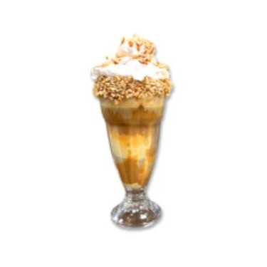 Café expresso, sorvete de creme, doce de leite, com amendoim e chantilly