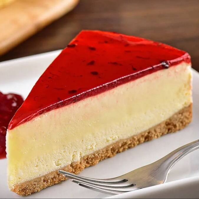 Torta a base de biscoito e creme cheese, coberta com geléia de frutas vermelhas.