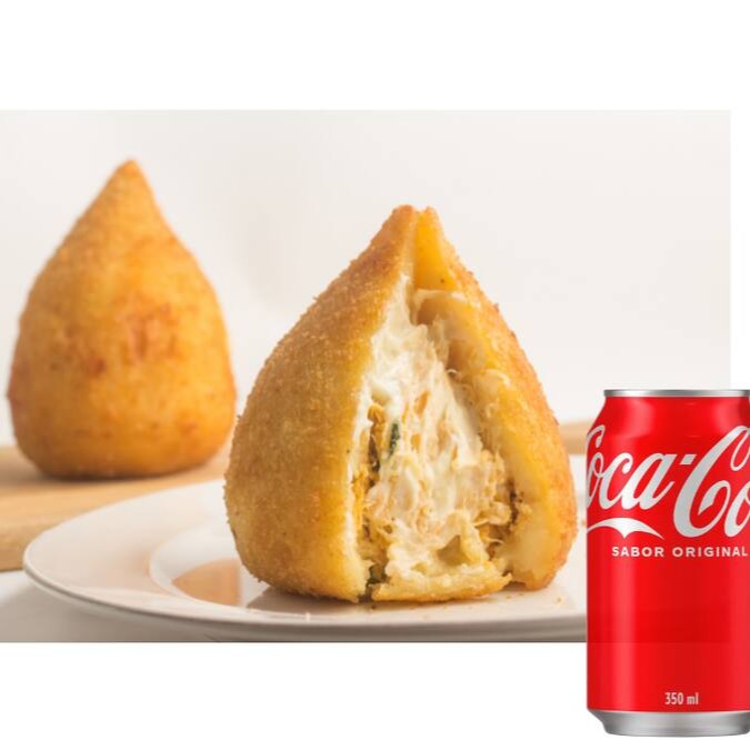 Combo perfeito para qualquer hora do Dia. Nossa coxinha crocante e recheada com frango com Catupiry com coca lata
